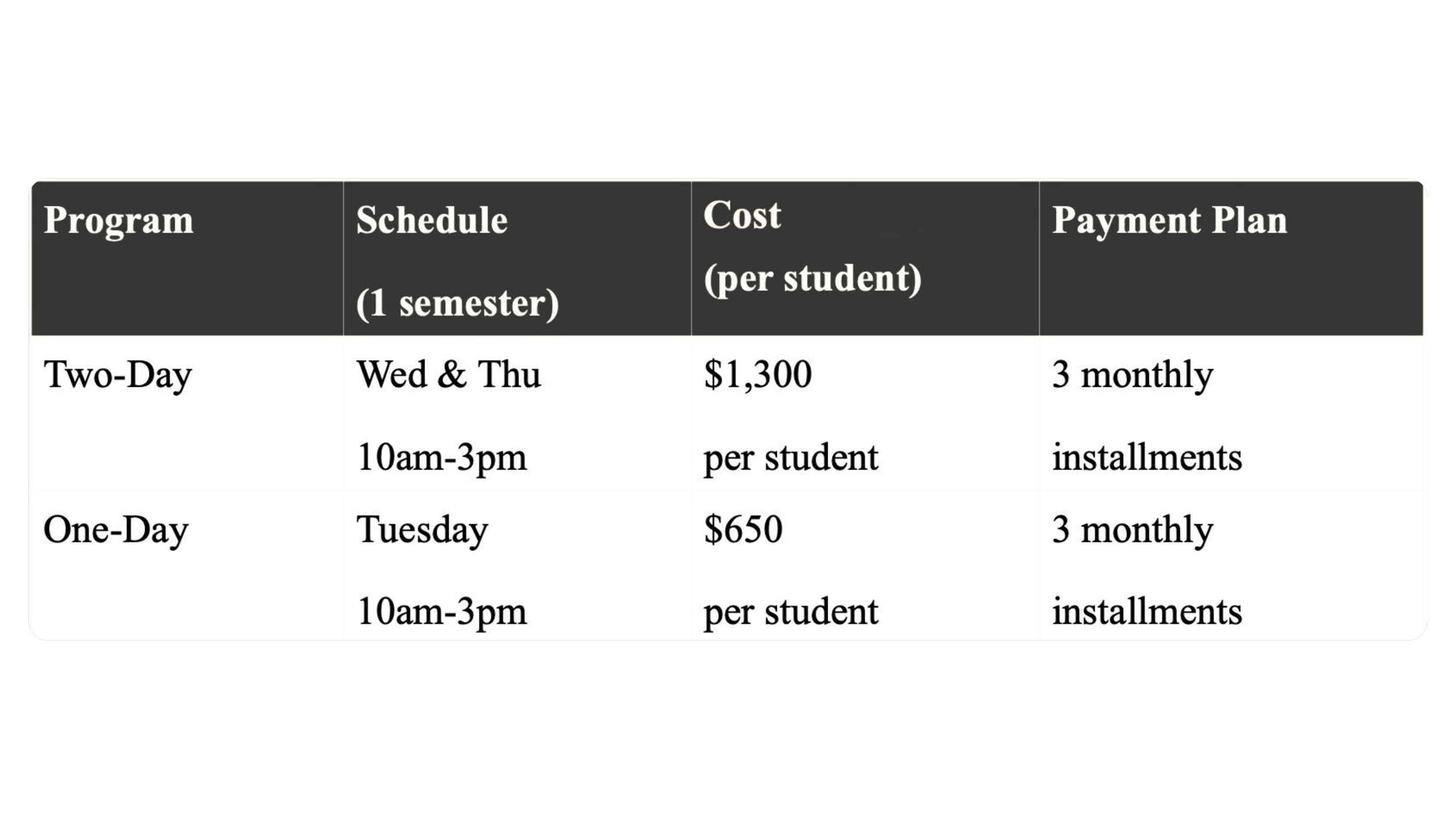 Format: 15-week semesters, Monday - Friday, 10 am - 3 pm
